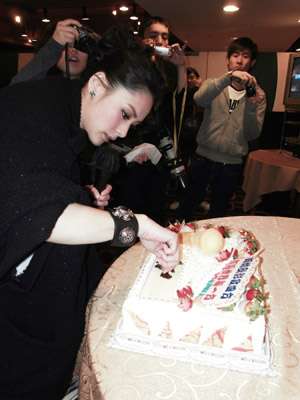 粉絲們得悉阿嬌近日忙于拍戲及籌備新專輯,特意送上寫有祝福阿嬌歌影事業(yè)順利的蛋糕。但粉絲又得知阿嬌曾學(xué)做蛋糕,對(duì)蛋糕要求甚高,故特別設(shè)計(jì)了一個(gè)既可表達(dá)粉絲們心意,又能讓阿嬌可即場(chǎng)簽名及自由創(chuàng)作,使兩者心思合二為一的精致蛋糕。