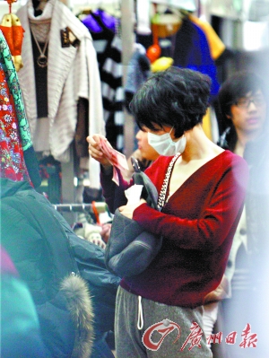 當(dāng)天下午兩時半,記者在東三環(huán)附近某服裝市場外閑逛,突然發(fā)現(xiàn)王菲的座駕正在停車場尋找停車位。沒多久,王菲穿著一件長長的羽絨服、戴著白口罩從車后座上走了下來。在等司機(jī)停好車后,王菲一行進(jìn)入服裝市場一層,一進(jìn)門便奔著買民族服飾的區(qū)域而去。最后王菲看中了一件帶盤扣的花團(tuán)圖案薄大衣。