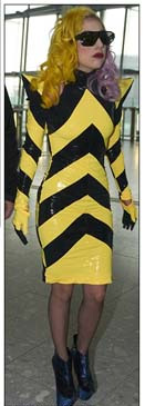 據(jù)臺灣媒體報(bào)道,美國女星LadyGaga近日出現(xiàn)在倫敦機(jī)場時(shí),竟穿著活像交通標(biāo)志的黃底黑條紋洋裝一件,很顯然她決定要自己為自己開道,以減少不必要的支出。