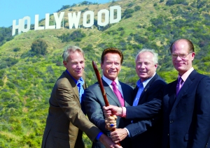 美國時間4月26日,加州州長施瓦辛格專門在招牌所在的山腳下演講,他說:“好萊塢招牌是夢想、機(jī)遇和希望的符號,它矗立在那里歡迎著一代又一代的夢想者、藝術(shù)家,還有奧地利的健美運(yùn)動員來到這里。”他還在講話中感謝了捐助者們,他們包括美國電影藝術(shù)與科學(xué)學(xué)院、CBS電視臺、NBC環(huán)球公司、索尼影業(yè)、20世紀(jì)?怂构、華納兄弟公司、時代華納公司、斯皮爾伯格、湯姆·漢克斯夫婦等等。
