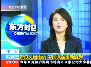 有意思的是,在進(jìn)行游泳世錦賽的報(bào)道時(shí),當(dāng)張泉靈談到張琳時(shí),屏幕左上角就立刻出現(xiàn)一個(gè)畫筆,動(dòng)態(tài)地描摹出張琳的彩色鉛筆畫,增添了喜感,讓人感覺尤為輕松。另外,主播語言“家常化”也是一個(gè)很明顯特點(diǎn)。