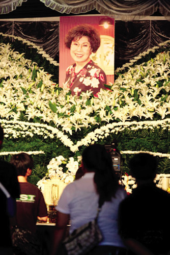 8月5日在臺(tái)北病逝的臺(tái)灣資深藝人文英的告別式15日上午在臺(tái)北板橋舉行,其生前眾多好友紛紛趕來(lái)送她最后一程!熬C藝大姐大”張小燕憔悴現(xiàn)身,遭逢婚變的賈靜雯專程趕來(lái)悼念永遠(yuǎn)的文英阿姨,與文英有四十年好交情的歌仔戲演員葉青也難得露面。