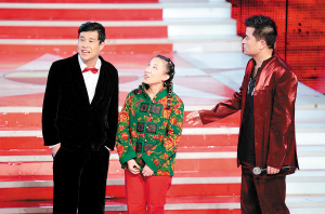 一番插科打諢后,小沈陽和毛毛的“不差錢”組合,開始與星光大道的其他選手進(jìn)行較量,看誰能最終演唱《三槍拍案驚奇》的主題歌。而這一期的嘉賓評委則是“三槍”劇組的主創(chuàng)人員。誰知前幾輪亮分時,“不差錢”組合根本沒占上風(fēng)。眼看唱主題歌的事要黃了,小沈陽和毛毛終于使出最后的殺手锏,請出自己的“舅姥爺”,這“舅姥爺”不是別人,正是導(dǎo)演張藝謀。