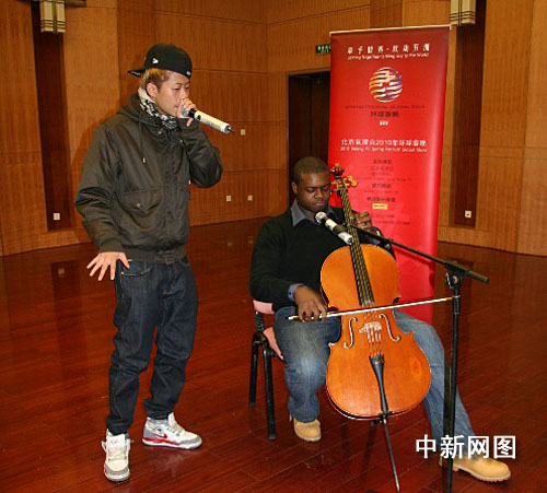 北京電視臺(tái)《環(huán)球春晚》希望通過(guò)不同國(guó)籍和文化背景的演員聯(lián)手,打造一場(chǎng)極具視覺(jué)沖擊力和感染力的春晚“大餐”。昨天他們專門(mén)邀請(qǐng)了來(lái)自美國(guó)的黑人留學(xué)生凱文,以及來(lái)自上海的Hip-Hop高手蟲(chóng)二一起排練Beat-Box。