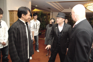 輪到周立波說話,成龍轉過身去和日本當紅歌手中孝介、中國內地歌手陳明等一一友好握手。