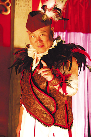 內地全新翻拍的文化喜劇《三笑之才子佳人》4月底上映在即,昨日片方發(fā)布了一組新鮮曝光的劇照。其中郭德綱在片中飾演的唐伯虎造型頗令人意外。他領銜主演的唐伯虎,雖為風流才子,長袍加身但仍然極少戴書生帽,而仍然以招牌光頭來演繹這個“憨厚版唐伯虎”。但影片一開始,這個“憨厚版唐伯虎”由于需要以歌傳情,遇見秋香時,正在舞臺上表演個人演唱會,因此這一幕的造型頗為突破:只見郭德綱打扮成現代版搖滾歌手模樣,頭上還帶著長長的雉尾做成的帽子,更有一種歐洲宮廷味道。郭德綱對這一搞怪造型頗為滿意,說:“服裝設計時融入了很多加勒比海盜的靈感,狂野的造型,說明有一種文人也瘋狂的感覺”! ●R 彧