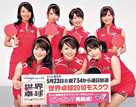中新網(wǎng)4月19日電 日本東京電視臺(tái)去年轉(zhuǎn)播橫濱世界乒乓球賽,讓一批美女主播組成“乒乓 7”組合報(bào)道賽事,結(jié)果收視創(chuàng)下同類(lèi)體育節(jié)目新高。世界乒乓球賽下月 23日在莫斯科開(kāi)打,東京電視臺(tái)決定重召“乒乓”,眾美女主播更以火辣辣超短紅裙亮相拼收視。