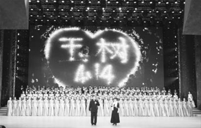 昨晚的《情系玉樹,大愛無疆——抗震救災募捐活動特別節(jié)目》賑災晚會,以新聞事件為主線,串起文藝演出和募捐活動。晚會按照時間的順序,穿插回放地震發(fā)生后的救援大事記,救援中的感人故事以及來自震區(qū)的報道,均出現(xiàn)在募捐現(xiàn)場。晚會一開始,在主持人白巖松的呼吁下,現(xiàn)場全體人士集體默哀三分鐘,隨后由百余位文體、曲藝界明星演唱了《我們眾志成城》,王菲、那英等明星領唱。