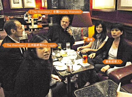 4月12日,湯唯與經(jīng)紀(jì)人及助手在香港中環(huán)文華東方酒店與“韋恩斯坦”老板Harvey Weinstein會面,F(xiàn)場所見,湯唯的英語非常流利。發(fā)現(xiàn)記者后,她面帶笑容,表現(xiàn)得體。在場的亞洲區(qū)總裁Bey Logan事后表示,Harvey Weinstein對湯唯大為贊嘆。Bey Logan說:“那天我們和湯唯只是一次很簡單的聚會,主要是想先了解一下她。她是一個不可多得的人才,會講廣東話、普通話和英文,很不錯!眴柕绞欠褚延泻萌R塢導(dǎo)演邀湯唯合作,他說:“一定有啦!如果有適合的角色,我們肯定會找湯唯!