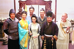 昨天探班現(xiàn)場(chǎng),拍的正是郭德綱、王學(xué)兵、蔡少芬、鄭中基、譚耀文的戲。