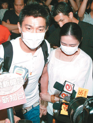 朱麗倩前天在機(jī)場(chǎng)被拍到時(shí),似用手護(hù)著肚子,引發(fā)懷孕聯(lián)想,陳嵐說:“那是媒體猜測(cè),我們都沒聽說!笔欠駮(huì)在百日內(nèi)完婚?陳嵐說,朱父喪事剛辦完,劉德華和朱麗倩還陷在悲傷情緒,只能簡(jiǎn)訊安慰他們不要太傷心,沒談到其它事情。