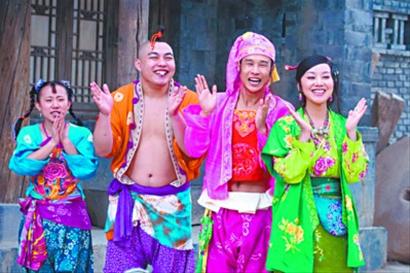 小沈陽本人膚色非常白,他的戲裝又是鮮艷的粉色,這正是張藝謀想要的反差效果。小沈陽的皮膚也得到張藝謀的不住稱贊,說他像“韓國明星”。在片場,每一條拍完之后,張藝謀就會(huì)招呼工作人員給小沈陽打傘,千萬別讓他曬黑,甚至還跟大家交流起了哪個(gè)牌子的防曬霜效果最好。