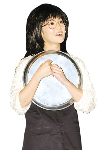 蔡卓妍(阿Sa)近日為舞臺劇《勁歌金曲》做總彩排,以“四眼妹”的眼鏡造型亮相,衣著簡單樸素。