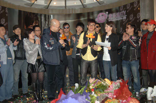作為黃勇這張全新專輯的監(jiān)制,同時也是黃勇老板兼大哥的齊秦因為臨時有事沒能來到發(fā)布會現(xiàn)場,但通過VCR送上了他特別的祝福。齊秦對黃勇音樂給予了極大的肯定和祝福。黃勇的好友龐龍、尹相杰、熊天平等也通過VCR送上了祝福。北京圣天驕影視文化藝術(shù)有限公司老總李繼宏也送上了一份精心準備的寓意深刻的禮物——金話筒,希望黃勇把他的歌聲通過這只金話筒帶給全世界所有喜歡他音樂的朋友。(李學仕)