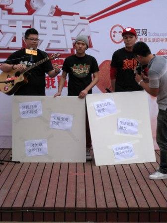 今年快男注定與眾不同,不僅“偽娘”選手備受關(guān)注,而且連“反偽娘”選手也不失風采,上周快男土豆網(wǎng)分賽區(qū)一組特殊選手C-BLOCK組合因在比賽現(xiàn)場打出 “保護純爺們 消滅偽娘族”的參賽口號,而備受網(wǎng)友關(guān)注并被封為“反偽娘斗士”,而有關(guān)這場“偽娘”與“反偽娘”的對決,昨日舞美師在博客爆出猛料:“著姐入圍前三甲不是問題,首先是因為吸引眼球的需要,這也是湖南衛(wèi)視選秀常用手段;不僅如此,劉著也已經(jīng)秘密簽約湖南衛(wèi)視旗下長沙天娛公司”。而針對舞美師的爆料內(nèi)容,記者也從網(wǎng)上了解到該組合相關(guān)資料,首先該C-BLOCK組合來自長沙,在當?shù)匾恢毙∮忻麣,實力不俗,去年多次參加湖南衛(wèi)視王牌節(jié)目《快樂大本營》、《成年禮》、《8090》等節(jié)目,而關(guān)于“偽娘”劉著網(wǎng)上開始有人爆出其與湖南衛(wèi)視關(guān)系甚密,這些相關(guān)信息與舞美師爆料內(nèi)容十分契合。為進一步求證舞美師的爆料內(nèi)容,記者向湖南衛(wèi)視快男導演組一編導求證,他表示:“不要相信舞美師博客內(nèi)容,純屬造謠,快男比賽保證公平選拔”! 漪