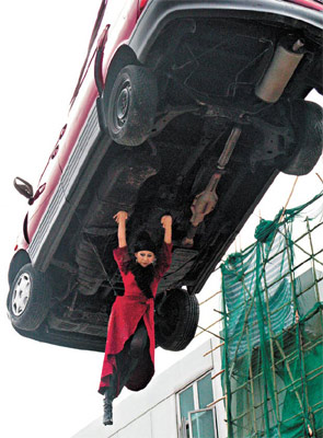 中新網(wǎng)2月2日電 蔡少芬昨日再化身女飛人,拍攝新劇《飛女正傳》。拍攝期間,蔡少芬被吊高到半空拍攝,事后忍不住笑說(shuō):“我真是吊到想自殺,拍完后都能做超人了!
