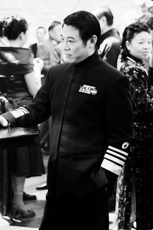 馮小剛、陳凱歌、陳道明、姜文、劉德華……《建國(guó)大業(yè)》的片場(chǎng)從來(lái)不缺明星,但李連杰的出現(xiàn)還是讓不少工作人員的精神為之一振。這位片酬以億計(jì)算的大腕身著藏青色的海軍將領(lǐng)服出現(xiàn)在浦江飯店內(nèi),精神奕奕。