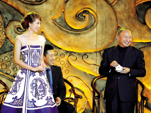 林志玲用古代女子的姿勢(shì)倒了一杯茶,走到吳宇森面前,身子微微一傾,纖聲細(xì)語(yǔ)道:“導(dǎo)演,您請(qǐng)!”吳宇森剛把茶接到手,主持人的聲音就響起了:“導(dǎo)演,這杯茶您得干了!”全場(chǎng)哄堂大笑,吳宇森只好再次喝完。