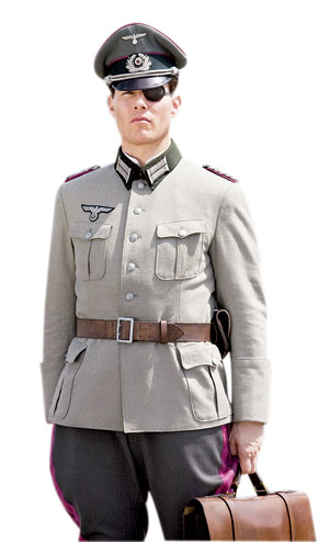 克魯斯飾演德國(guó)陸軍上校施陶芬堡。二戰(zhàn)讓他失去了左眼、右臂以及左手的兩個(gè)手指頭。隨后,他成為刺殺希特勒行動(dòng)的執(zhí)行者。