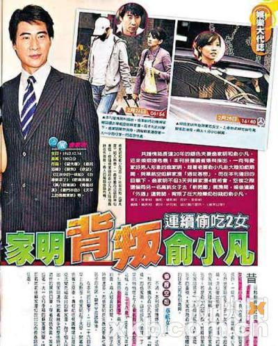 2006年俞小凡復出拍戲,隔年兩人再續(xù)戲緣拍《豪門本色》,2009年結(jié)婚8年,他首度被拍到疑似外遇,與兩名女子約會