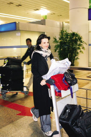 昨晚8時(shí)25分,奧斯卡得主、法國(guó)影星朱麗葉·比諾什由韓國(guó)首爾飛抵上海浦東國(guó)際機(jī)場(chǎng)。比諾什此次抵滬可謂十分低調(diào),現(xiàn)身機(jī)場(chǎng)時(shí)僅有一名男助理陪同。機(jī)場(chǎng)沒有影迷接機(jī),也沒有其他媒體來(lái)競(jìng)相采訪,接機(jī)的主辦方同樣沒有拿出顯眼的標(biāo)語(yǔ),現(xiàn)場(chǎng)十分冷清。