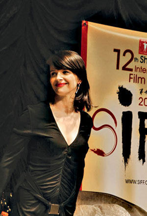 作為上海國際電影節(jié)的傳統(tǒng)預(yù)熱活動,第六屆法國電影展影迷見面活動昨日在上海影城舉辦,主角是朱麗葉·比諾什。32年前,雕刻家父親就帶著12歲的她到過上海,“我太小,沒有印象了。今天舊地重游,感覺上海是一個充滿哲學(xué)味的城市!北戎Z什透露,12歲的她怕生,而昨天面對眾多影迷,44歲的她是那么從容、優(yōu)雅,親切。