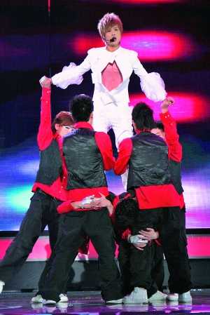 前晚大牌很多話題明星不少,因“牽手門(mén)”備受關(guān)注的庾澄慶擔(dān)任表演嘉賓。但最終“脫穎而出”的還是李宇春(春春)。摘得“最佳舞臺(tái)演繹獎(jiǎng)”后,上臺(tái)表演《WHY ME》時(shí),完成開(kāi)始的空翻動(dòng)作后春春邊唱邊跳,但上衣中間的紐扣突然裂開(kāi),由于表演的是快歌,紐扣爆裂位置越擴(kuò)越大,到結(jié)束時(shí)打底衫幾乎暴露出來(lái)。幾秒鐘后醒悟的春春,不時(shí)用手捂著胸口。事后談到“爆衫”一事,春春稱是對(duì)自己舞臺(tái)經(jīng)驗(yàn)的考驗(yàn),“工作人員嚇?biāo)懒,他們(cè)谂_(tái)下也不清楚,因?yàn)榇虻咨朗侨馍,所以很?dān)心。但沒(méi)有時(shí)間扣起來(lái),并且動(dòng)作幅度減小也不好看。”