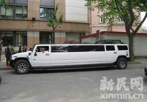 簽約儀式設在汾陽路上,新民網記者抵達現場時,看到一輛加長版“悍馬”停在簽約現場的對面。由于汾陽路狹小,只有兩個車道,加長版“悍馬”又開過了,致使轉彎轉不過去!昂否R”停在路邊,需要等身后的車輛都開走才能往回倒,再轉進簽約現場。這樣一來,造成了汾陽路上的交通堵塞。