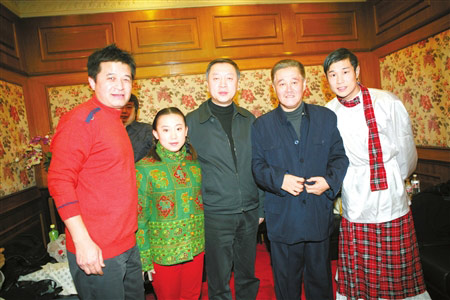 趙本山為了春晚的演出,日夜操勞,頂住了巨大的壓力。他嘆了一口氣說(shuō),“二十多天前,春晚導(dǎo)演組一開(kāi)始就把《送蛋糕》槍斃了,當(dāng)時(shí),我晚上急得睡不著覺(jué)。∵@個(gè)時(shí)候去哪兒弄作品?突然一天晚上,我看見(jiàn)畢福劍主持的《星光大道》,一下子有了靈感,就叫畢福劍來(lái)演小品。結(jié)果,我一打電話(huà)給老畢,老畢就同意了。現(xiàn)在,排練幾天,效果不錯(cuò),但人確實(shí)很累。”趙本山傷感地說(shuō):“其實(shí)這是老毛病,去年就犯過(guò),但為了觀(guān)眾,我必須堅(jiān)持下去。我今年都50多歲了,頭發(fā)快白完了,總不能老守著春晚這舞臺(tái),也得有接班人啊。我希望新人盡快成長(zhǎng)!”