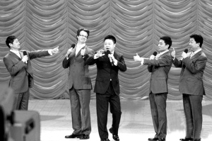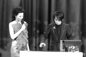 昨晚,央視2009年元宵晚會(huì)如期播出。由于是錄播,所以“我最喜歡的春節(jié)聯(lián)歡晚會(huì)節(jié)目”評(píng)選也已提前揭曉,《不差錢》拿下小品類一等獎(jiǎng),劉謙也奪得曲藝類一等獎(jiǎng)(本報(bào)昨日已報(bào)道)。在元宵晚會(huì)上,小沈陽和劉謙的名字反復(fù)被眾多明星提及,而劉謙、朱軍更是模仿小沈陽的音調(diào),引來陣陣笑聲。