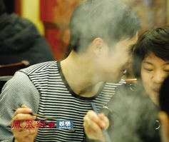 圖文:小沈陽涮肉豪飲慶功 與嬌妻親密耳語
