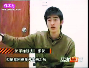 新人張翰在《流星雨》中的角色相當(dāng)于《流星花園》里言承旭扮演的道明寺,是該劇力捧的對(duì)象。不料,上周末,多次曝光天娛和湖南衛(wèi)視內(nèi)幕的“舞美師”又在博客上下猛藥,稱(chēng)早在2007年,還是中戲大四學(xué)生的張翰駕車(chē)違規(guī),為逃避處罰,他強(qiáng)行把警察在地上拖了20米,導(dǎo)致該警察嚴(yán)重骨折,張翰因此被刑拘!拔杳缼煛睘樽C明事件真實(shí)性,還在博客上公布了一段《法治進(jìn)行時(shí)》的視頻,視頻顯示的主角確為目前《流星雨》中飾演慕容云海的張翰,視頻中他的名字為張漢。