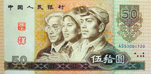 從網(wǎng)上曝光的專輯封面看,其設(shè)計(jì)與舊版50元人民幣十分類似。專輯封面上,雪村頭戴煉鋼工人眼鏡,和一個(gè)頭戴毛巾的胖男人、一個(gè)戴著眼鏡,科學(xué)家模樣的人并排出現(xiàn)在正中間。這一設(shè)計(jì)與舊版50元人民幣正面主景工人、農(nóng)民、知識(shí)分子頭像極其相似。50元人民幣左上角“中國(guó)人民銀行”的字樣在專輯封面上被改成了“雪村音樂(lè)評(píng)書”,右上角阿拉伯?dāng)?shù)字“50”的字樣被改成了專輯名《慶功酒》。