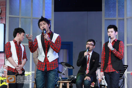 很少參加娛樂節(jié)目的當代大詩人汪國真,近日做客《天天向上》。在汪國真的率領(lǐng)下,來自中港臺三大名校的“少年詩人”們現(xiàn)場耍帥,大秀“詩藝”,惹得臺下一干女生尖叫連連。連主持群的五位帥哥也不甘風頭被搶,充分將搞笑元素溶入詩朗誦中,使得全場氣氛不斷高漲。此外,今天還是汪涵36歲生日,全場齊唱生日快樂,一片其樂融融。