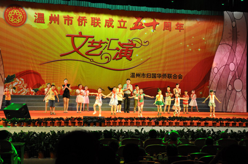 中新網7月16日電 據鹿城區(qū)僑聯消息,近日,在浙江省溫州市僑聯成立五十周年紀念慶典大會上,七都僑界留守兒童為各級領導、海外僑胞、歸僑僑眷獻上了精彩的節(jié)目——“快樂之家”朗誦劇。