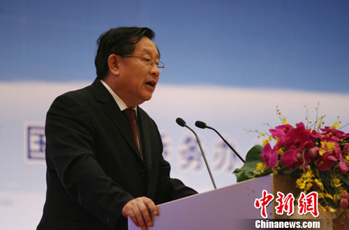 第六屆世界華人論壇于7月26日至27日在廣州舉行,出席本屆論壇的海內外代表350多人,其中海外代表190人,來自美國、加拿大、英國、德國等25個國家和地區(qū),大多數(shù)為新能源、生物醫(yī)藥、金融、食品工程、信息通訊等領域的學術權威出席本屆論壇。圖為全國政協(xié)副主席、國家科技部部長萬鋼在大會開幕式上致辭。 中新社發(fā) 蘇丹 攝