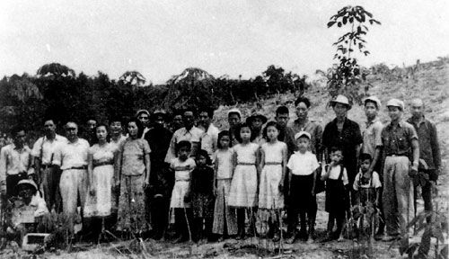 這張攝于1956年的照片,地點(diǎn)位于南田農(nóng)場(chǎng)愛(ài)國(guó)作業(yè)區(qū)的橡膠林前。