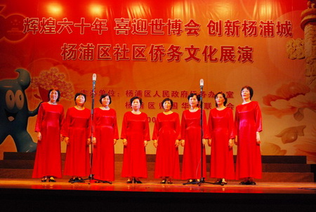 中新網(wǎng)10月26日電 10月21日下午,“輝煌六十年喜迎世博會創(chuàng)新楊浦城”——上海市楊浦區(qū)社區(qū)僑務文化展演活動在楊浦區(qū)文化館舉行。上海市僑辦副主任陳文佳,副區(qū)長馬杰富,區(qū)委統(tǒng)戰(zhàn)部副部長、區(qū)政府僑辦主任胡耀良,區(qū)僑聯(lián)主席曹國強等出席活動。社區(qū)歸僑僑眷及(僑界人士)代表近500人參加活動。