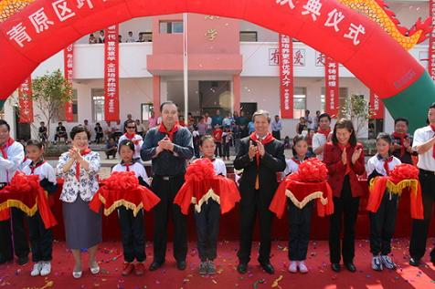 中新網(wǎng)11月4日電 據(jù)江西僑聯(lián)網(wǎng)站消息,2009年10月31日上午,江西省吉安市青原區(qū)富田鎮(zhèn)坪田小學(xué)鑼鼓陣陣,鞭炮長鳴,五顏六色的彩旗迎風(fēng)飄揚,同學(xué)們穿上了節(jié)日的盛裝,戴上鮮艷的紅領(lǐng)巾,臉上露出了燦爛的笑容,雙手興高采烈地揮舞著美麗的鮮花,熱烈慶!凹訍蹆S心小學(xué)”的落成。