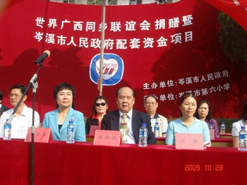 廣西自治區(qū)僑辦副主任鐘志英、副處長藍(lán)勝,世界廣西同鄉(xiāng)聯(lián)誼會(huì)主席張桂祥等6位嘉賓,岑溪市黨委、政府及教育局、僑辦等相關(guān)部門領(lǐng)導(dǎo)出席了活動(dòng)。