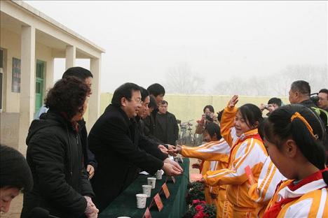 中新網(wǎng)12月15日電 據(jù)山東省僑辦消息,12月10日上午,山東省僑辦副主任呂善勇、濟(jì)南市僑辦副主任張勝利受全美韓華聯(lián)誼總會(huì)前會(huì)長王同勛的委托,赴濟(jì)陽縣守志小學(xué)頒發(fā)2009年度獎(jiǎng)學(xué)金及征文比賽獎(jiǎng)勵(lì)。