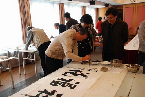 華僑書畫院近20位黨員及入黨積極分子參加了會(huì)議。書畫院院長朱鵬高等黨員發(fā)言,表達(dá)了將通過書畫院黨支部團(tuán)結(jié)更多的僑界書畫家,組織他們?yōu)辄h的中心工作更好服務(wù)的心愿和志向。