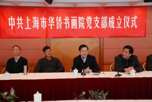 上海市僑辦主任、黨組書記崔明華出席并講話。他高度評(píng)價(jià)了華僑書畫院的書畫家們在弘揚(yáng)中華優(yōu)秀傳統(tǒng)文化、熱衷社會(huì)公益事業(yè)等方面作出的積極貢獻(xiàn),向加入書畫院黨組織的黨員書畫家們表示熱誠地歡迎。