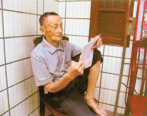 這是一張普通的照片。11月19日,當(dāng)海南日報記者在東方市八所鎮(zhèn)的一處僻靜的院落中見到這張照片時,迅速被老人一臉專注的神情抓住了,他正細(xì)細(xì)端詳著一張信紙,眼眶微微發(fā)紅,似乎某些信息勾起了老人悲傷的記憶。