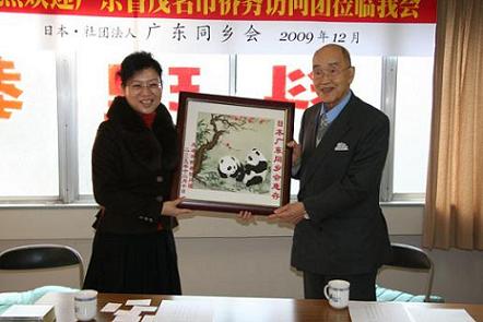 在日本訪問調(diào)研期間,僑務(wù)訪問團受到了日本廣東同鄉(xiāng)會的熱情接待。除會長陸煥鑫先生因公事出國訪問外,該會名譽會長郭少東、顧問李國松、副會長朱銘江、副會長潘創(chuàng)始率十幾位理、干事在會館迎候會見,召開歡迎會,雙方進行了熱情友好的交流。梁紅健在會上介紹了茂名經(jīng)濟社會發(fā)展情況,同時向該會贈送了茂名投資指南、茂名特式的南玉鎮(zhèn)紙以及富有中國特色的刺繡工藝品。朱銘江介紹了日本廣東同鄉(xiāng)會的總體情況,并向訪問團回贈了“吉祥虎”紀念品。會后廣東同鄉(xiāng)會備了豐盛的午宴熱情款待僑務(wù)訪問團,席間鄉(xiāng)情濃郁,追今撫昔,無所不談,令人深感同胞情熱、鄉(xiāng)情寶貴。訪問廣東同鄉(xiāng)會后,訪問團隨后走訪了居住日本橫檳、京都和大阪的旅日僑胞和留學日本學生,對茂名市旅日僑胞情況有了進一步的了解。