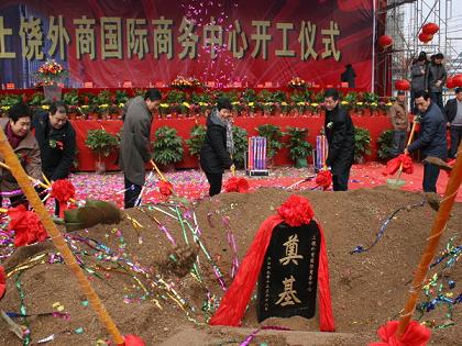 最后,由周錦宣布上饒外商國際商務(wù)中心正式開工,并為工程奠基,頓時,鞭炮齊鳴、彩球飄舞、鑼鼓喧天、禮花漫天開放,整個典禮儀式氣氛達到了高潮。