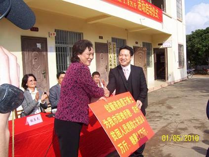 欽州市政協(xié)副主席羅志芳代表市委、市政府發(fā)言,并向充滿愛心、為欽州市弱勢(shì)群體慷慨解囊的原天博士及家人表示衷心的感謝。