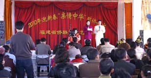 當(dāng)日下午,福建省僑聯(lián)文化藝術(shù)團(tuán)在農(nóng)場中學(xué)禮堂舉行了2010年迎新春“親情中華”慰僑演出活動(dòng),這也是福建省僑聯(lián)文化藝術(shù)團(tuán)成立不久以來首次下鄉(xiāng)正式演出,意義不同尋常。藝術(shù)團(tuán)準(zhǔn)備的13個(gè)節(jié)目個(gè)個(gè)精彩,舞蹈《大唐華章》展現(xiàn)了盛唐中國的瑰麗風(fēng)采,葫蘆絲獨(dú)奏《月光下的鳳尾竹》把人們帶入了月光盈盈、竹影婆娑的美好境界,情景舞蹈《洗衣歌》使人領(lǐng)略了藏族風(fēng)情和軍民魚水情誼,等等。演出得到了僑場歸僑僑眷的熱烈歡迎,領(lǐng)導(dǎo)群眾歡聚一堂共賞精彩節(jié)目,氣氛熱烈祥和。(唐宜)