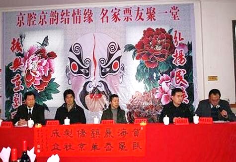 中午十一時(shí),大會(huì)程序進(jìn)行完畢,帷幕剛落,京劇的鑼鼓聲,琴聲齊聲啟鳴,將慶典活動(dòng)推向高潮。精彩的京劇演唱表演開始,來(lái)自區(qū)、市、省和各地的41名京劇演唱名家一個(gè)接一個(gè),一腔換一腔,腔腔調(diào)調(diào),鏗鏘有力,京劇唱腔交響著鑼鼓的強(qiáng)烈節(jié)奏,震撼了整個(gè)大廳,響徹王宅村僑聯(lián)活動(dòng)中心的上空。