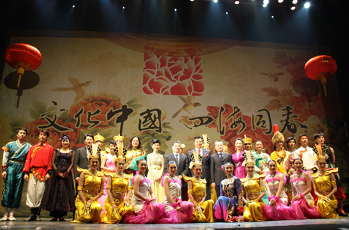 熱烈喜慶的《新春花鼓》拉開了 “文化中國·四海同春”歐洲巡演的序幕。美麗婀娜的維族舞蹈《頂碗舞》、熱情奔放的藏族舞蹈《快樂藏人》、氣勢雄渾的馬頭琴獨(dú)奏《萬馬奔騰》贏得陣陣掌聲;歌唱家呂薇的一曲充滿鄉(xiāng)音的《采茶舞曲》,讓浙江籍僑胞倍感親切;著名男高音歌唱家劉斌鏗鏘有力的《咱當(dāng)兵的人》,將整臺演出推向高潮;美輪美奐的舞蹈《千手觀音》落下了藝術(shù)團(tuán)在法演出的帷幕。持續(xù)近三個小時精彩絕倫的演出不時地博得了觀眾雷鳴般的掌聲。僑胞們在《難忘今宵》的音樂聲中久久佇立,不愿離去,贊嘆“這是一場內(nèi)容豐富、充滿激情、民族特色濃郁、藝術(shù)水準(zhǔn)高超的演出,令人難忘”。他們由衷地感謝國務(wù)院僑辦在新春之際為旅法僑胞帶來的文化盛宴。